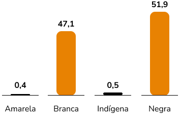 Vítimas de estupro e estupro de vulnerável menores de 14 anos, por raça/cor (em %) Brasil, 2023