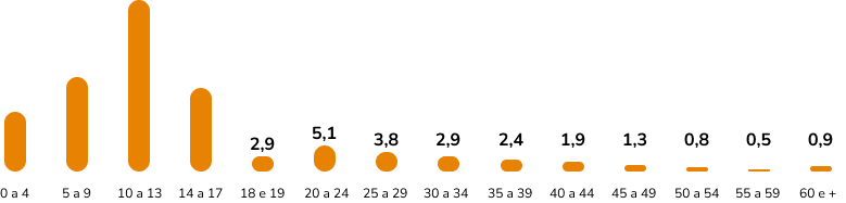 Faixa etária das vítimas de estupro e estupro de vulnerável (em %) Brasil, 2023